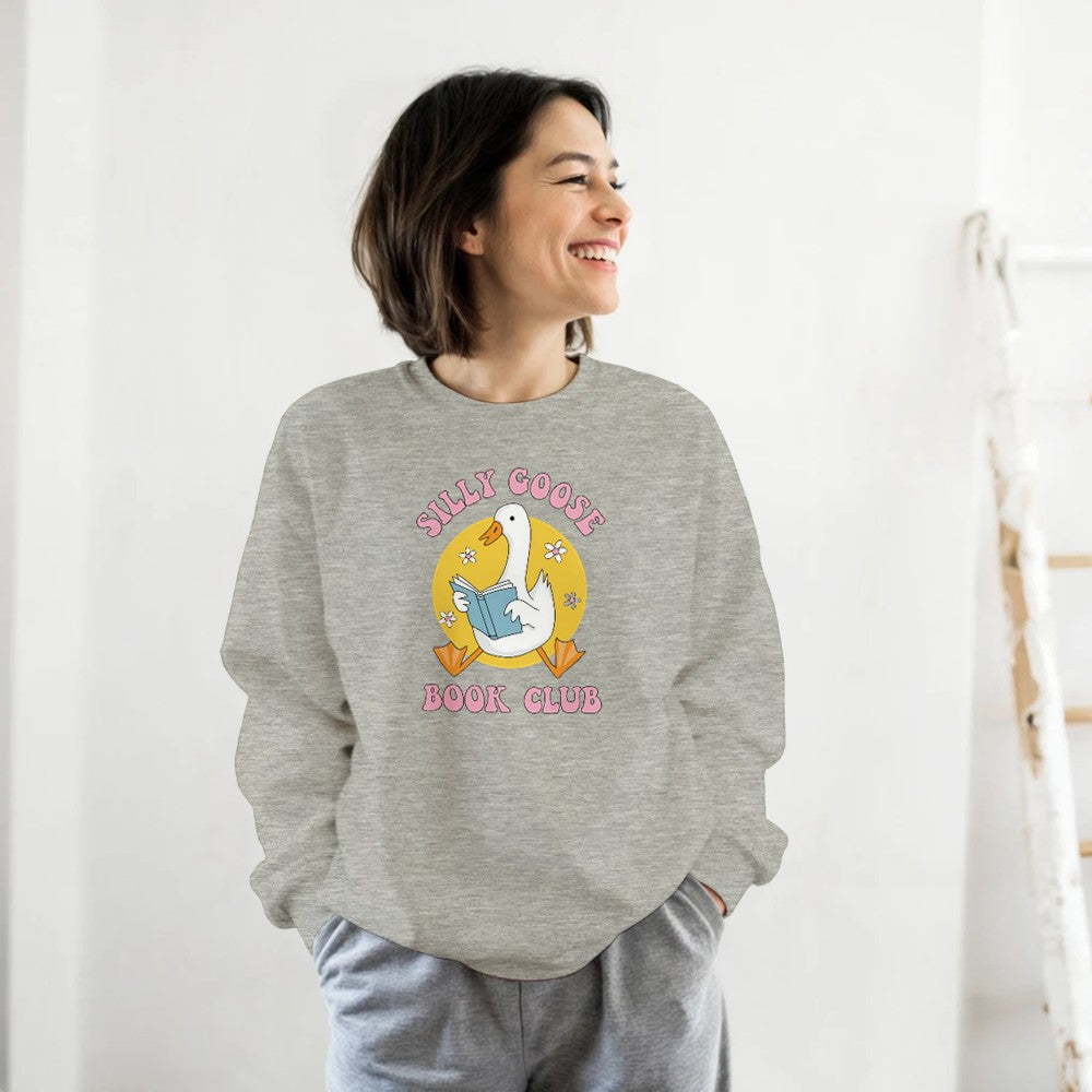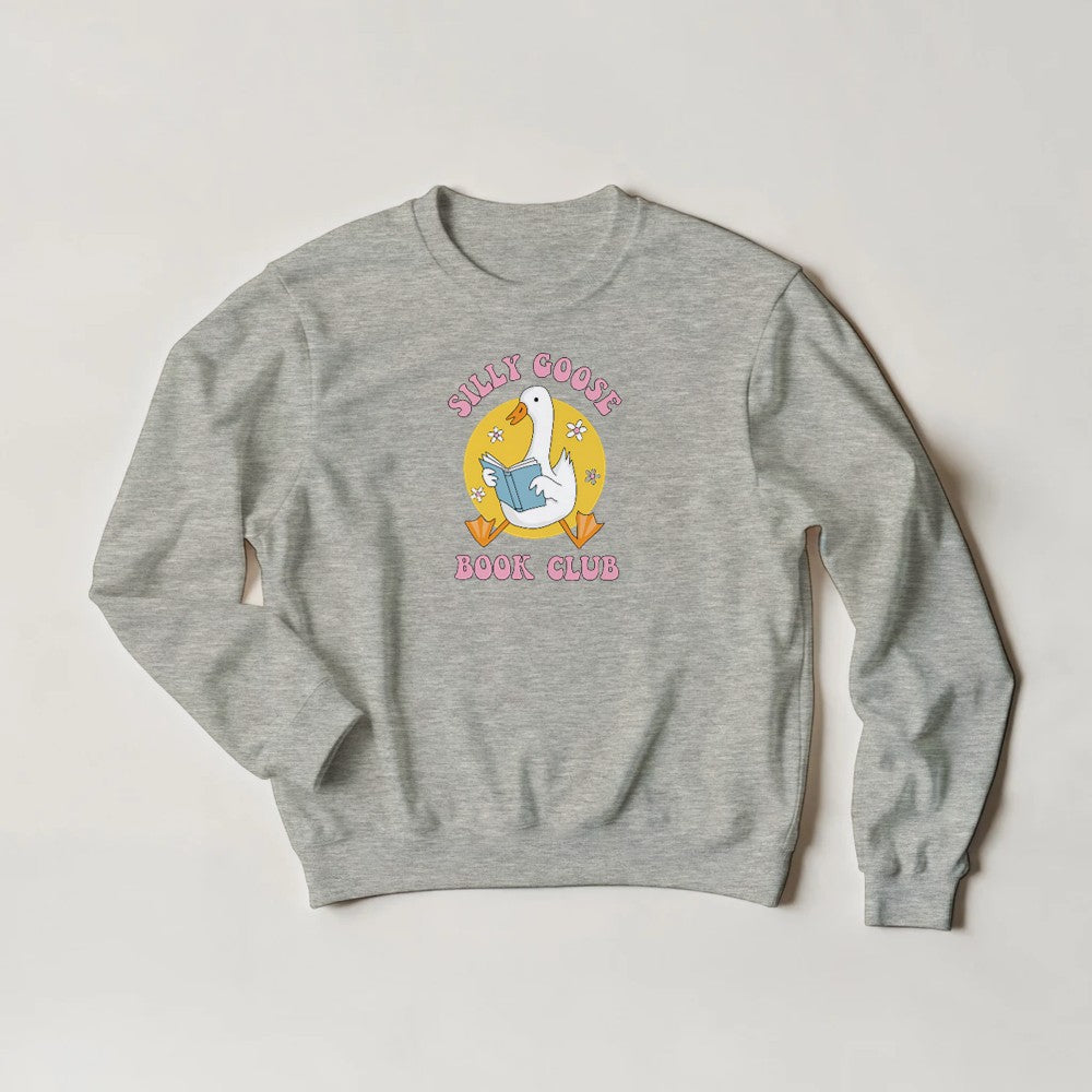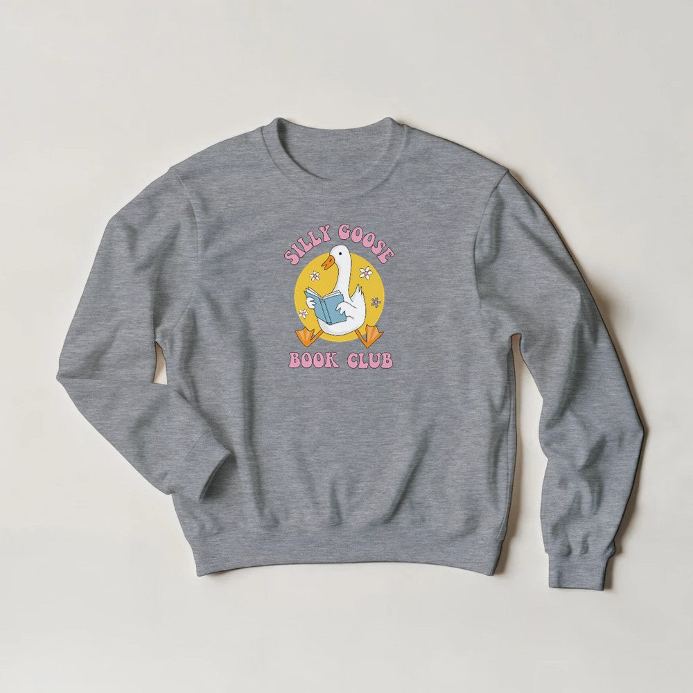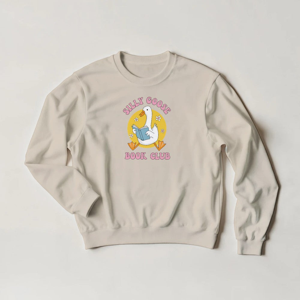 Join the cosiest club around with our “Silly Goose Book Club” sweatshirt — a playful, feel-good jumper made for book lovers who don’t take themselves too seriously. Featuring an adorable illustrated goose reading a book, this design is perfect for readers who love cosy fashion with a touch of humour.